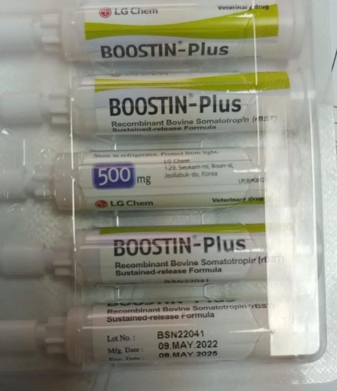 Boostin-Plus is a long-acting recombinant bovine somatotropin (r-bST). It increases milk producción without altering the physical and chemical characteristics of the milk nor clínical and reproductive parameters. Its slow-release formula ensures adecuate levels of r-bST for two weeks.